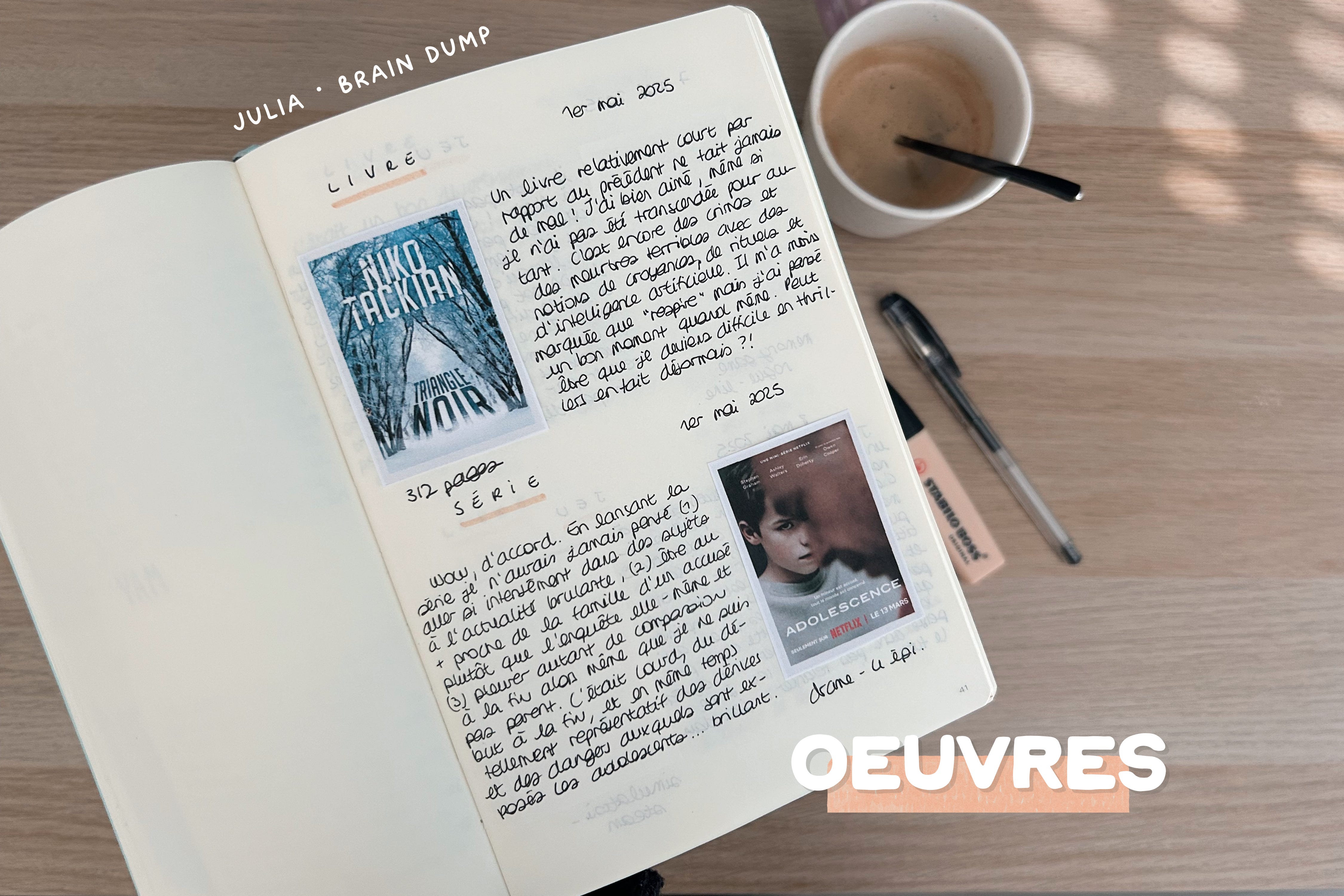 C’est ici que la magie opère (rien que ça ahah) puisque je viens noter tout ce qui m’a touché (ou pas) dans une oeuvre pour ne plus l’oublier — ou en tout cas en garder une trace définitivement !