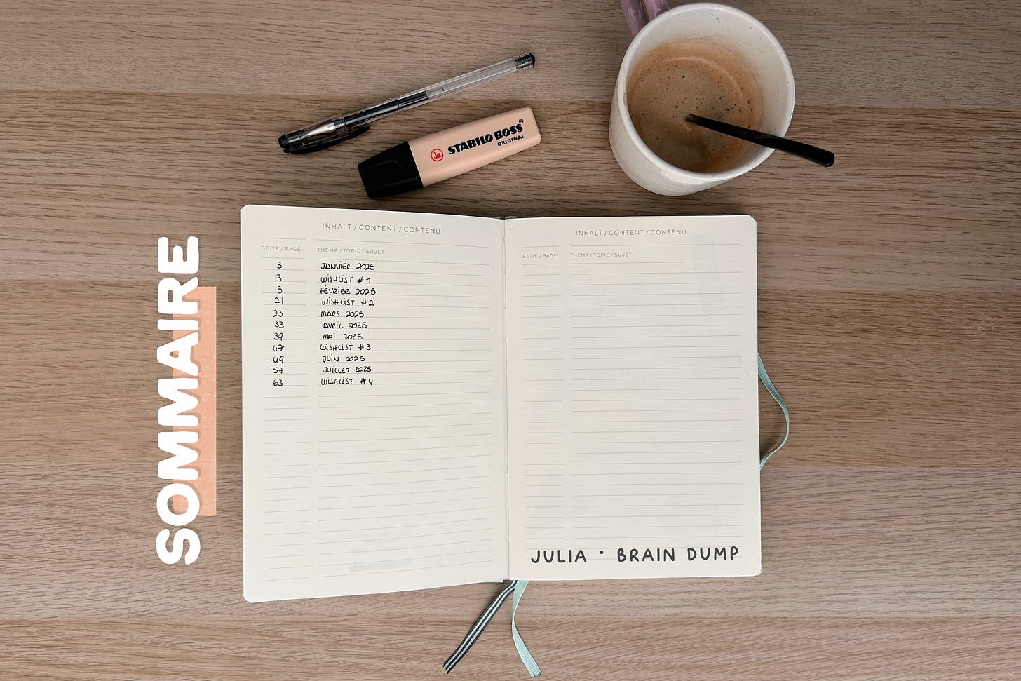 J’ai choisi un carnet simple, de ma marque préférée : Leuchtturm1917 et j’ai décidé d’une structure simple :